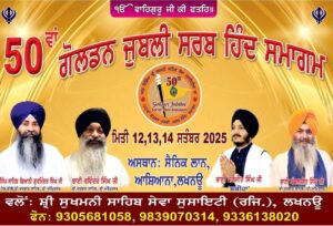 ਗੁਰਦਾਸਪੁਰ ਸੁਸ਼ੀਲ ਬਰਨਾਲਾ-:ਇਸ ਵਾਰ ੫੦ ਵਾ ਸਰਬ ਹਿੰਦ ਸ੍ਰੀ ਸੁਖਮਨੀ ਸਾਹਿਬ ਸੋਸਾਇਟੀਆ ਦਾ ਸਾਲਾਨਾ ਸਮਾਗਮ।” ਸਥਾਨ ਸੈਨਿਕ ਲਾਨ ਆਸ਼ਿਆਨਾ ਲਖਨਊ” ਵਿਖੇ ਆਯੋਜਿਤ ਕੀਤਾ ਜਾ ਰਿਹਾ ਹੈ। ਇਸ ਪ੍ਰੋਗਰਾਮ ਬਾਰੇ