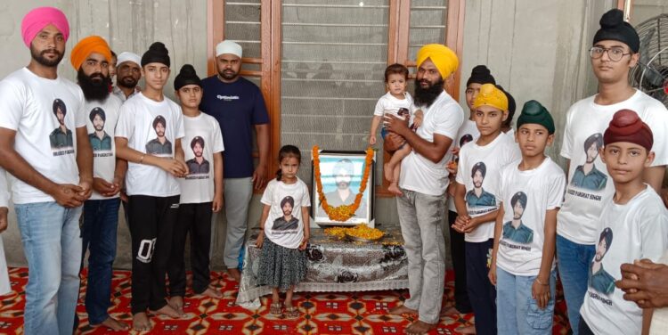 गुरदासपुर 10 मई (अंशु शर्मा) – भारतीय सेना की 21 पंजाब रेजीमेंट के शहीद सिपाही प्रगट सिंह का पहला श्रद्धांजलि समारोह शहीद सैनिक परिवार सुरक्षा परिषद के महासचिव कुंवर रविंदर सिंह विक्की की अध्यक्षता में गांव दबुर्जी के गुरुद्वारा साहब में आयोजित किया गया। जिसमें हलका इंचार्ज गुरदीप सिंह बतौर मुख्य मेहमान शामिल हुए। इनके अलावा शहीद के पिता प्रीतम सिंह, माता सुखविंदर कौर, दादी बलविंदर कौर, बहनें किरणदीप कौर व अमनदीप कौर, चाचा तरलोचन सिंह, ताया मोहिंदर सिंह, बहनोई