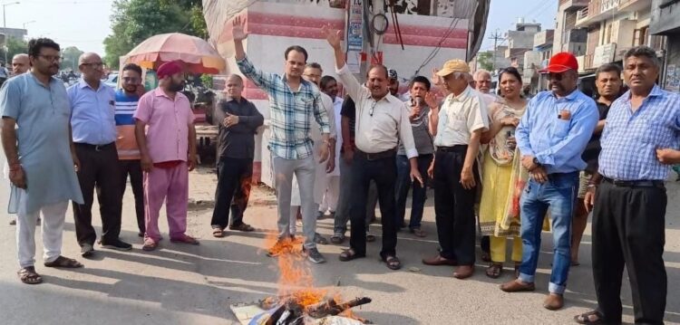 गुरदासपुर 3 जुला ई( शिवा ) – आज विश्व हिन्दू परिषद और बजरंग दल जिला गुरदासपुर द्वारा जिला प्रधान शाम लाल सैनी की अध्यक्षता में उदयपुर में हुए टेलर कन्हैया लाल की निर्मम हत्या के रोष स्वरूप बहरामपुर चौक में जिहादी आतंकिओ का पुतला फूंक कर प्रदर्शन किया गया इस अवसर पर जिला बजरंग दल संयोजक गगन शर्मा, सह संयोजक अंकुश महाजन, सह मंत्री भरत भूषण महाजन विशेष तौर पर मौजूद रहे